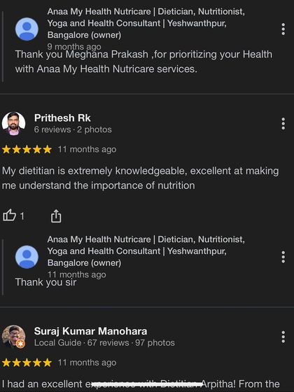 Namaste! We are Anaa My Health Nutricare Services. Been at this for 15 years, helping thousands find balance with food-as-medicine. We love sharing nutrition wisdom, whether it’s college kids, office folks, or elders. Big fan of traditional Indian meals, and proud to see Karnataka getting fit. We believe health advice is valuable, not just free gyaan. When not working, we’re just living life, eating good food, and finding joy. Balance, always.