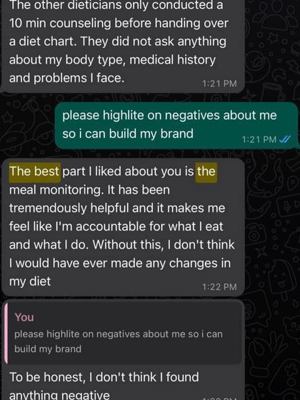 - Daily nutrition therapy for diabetes management or other conditions, with chat support from my team