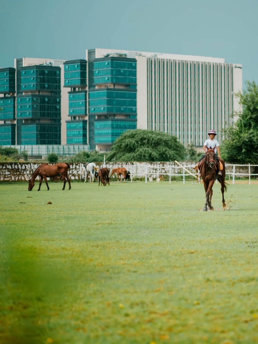 Located in Gurugram, our club features a large outdoor arena, lush green lawns for grazing, and well-maintained stables. We have floodlights for comfortable evening rides, allowing you to escape the city bustle any time of day.