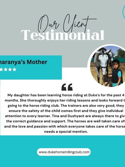 Don't just take our word for it. Hear directly from our riders and their families about their experience, the skills they've learned, and the connections they've made at Duke Horse Riding Club.