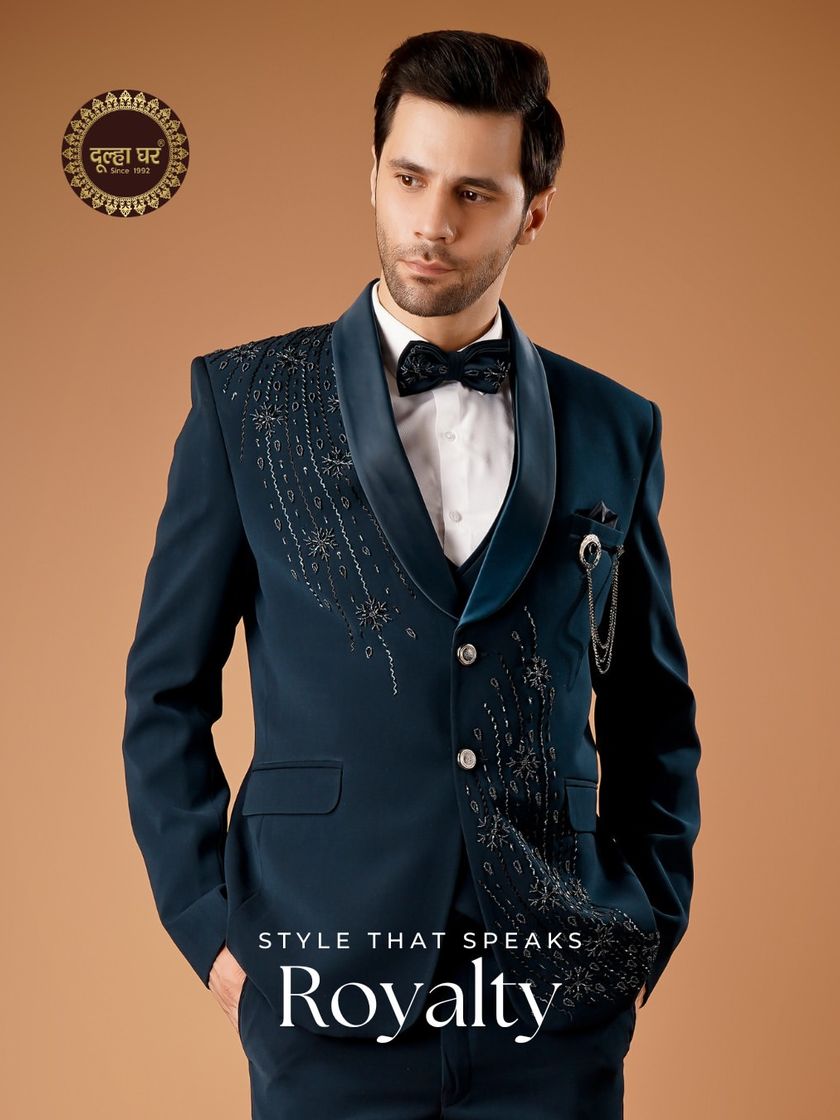 For your post-wedding celebrations, I offer a collection of sophisticated tuxedos and formal suits. These pieces feature unique ethnic-inspired details, embroidery, and modern cuts, providing a perfect fusion of Western formality and Indian artistry.