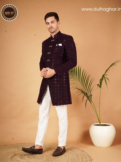 This is the first impression of my brand. It's a curated selection that showcases the royal elegance, modern style, and detailed craftsmanship I pour into every piece. Each outfit here is chosen to represent the best of what I offer, from grand wedding sherwanis to sophisticated Indo-Western ensembles.