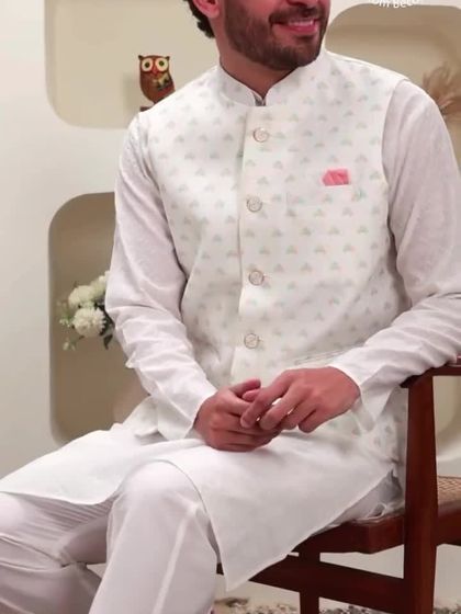 Explore my versatile and popular combinations of comfortable kurtas paired with structured Nehru jackets. I offer these sets in a variety of premium fabrics like brocade and silk, and in styles ranging from solid colors to intricate patterns. This is a look I personally love for its royal feel, perfect for any festive occasion.