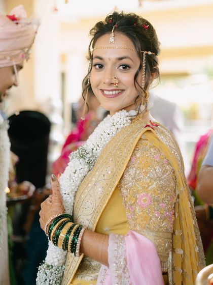I have a special place in my heart for Maharashtrian bridal beauty. This gallery is dedicated to my stunning Marathi brides. You'll find everything from traditional Nauvari saree looks to modern pastel interpretations, all featuring my signature dewy, minimal makeup style.