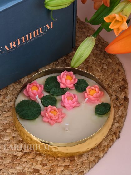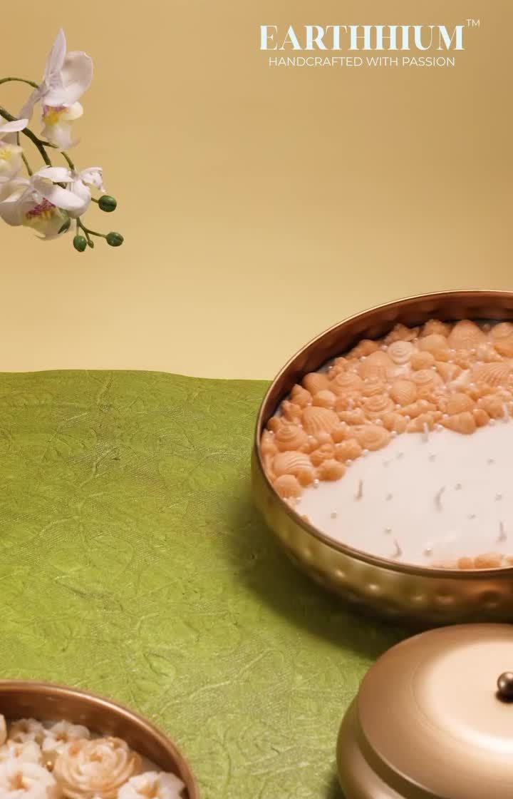 Designed to be the star of your table, these large-format candles are poured into beautiful urlis and bowls. I offer them in rustic wooden bowls for an earthy feel, natural coconut shells for a tropical vibe, and elegant metal urlis filled with intricate floral arrangements for festive occasions.