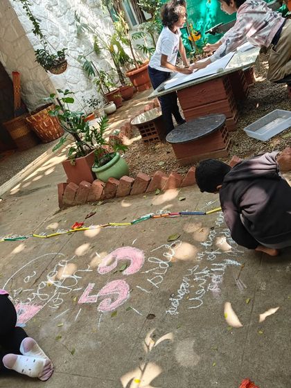 Community isn’t just a word. Kids run collection drives, fundraise for animals, and create pookolam for Diwali. Our "Going Out" program means field trips with a purpose, like harvesting clay at the lake or researching at an aquarium. The earth is our real classroom.