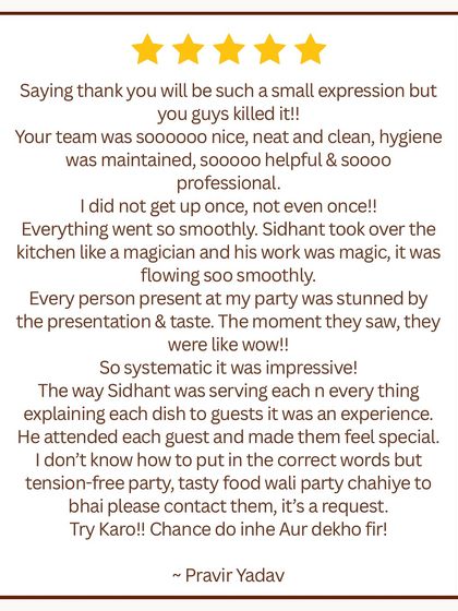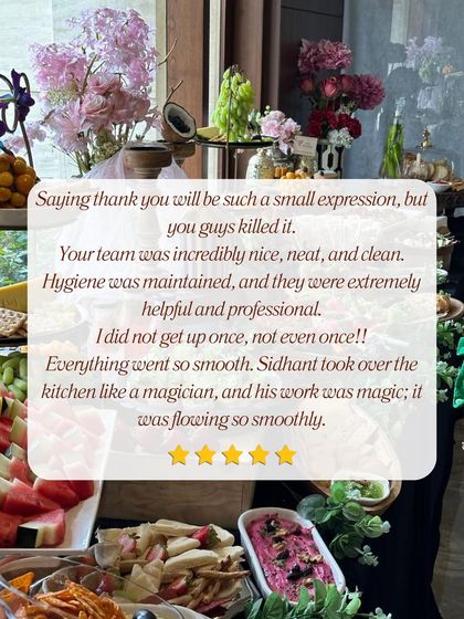 Hey, we’re Ritu and Sidhant - EatbySPICYGRAINS is our baby. Food isn’t just food for us, it’s the heartbeat of any party. We love being right there at events, making sure you can chill while we plate up memories. Sidhant in the kitchen is pure magic, guests go wow. That’s what we live for - your celebration, our world.