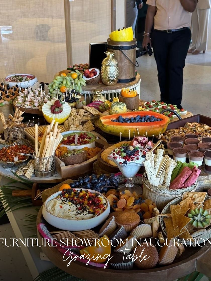 Our grazing tables are the heart of the celebration, designed as edible centerpieces. We style each table with a lavish spread of cheeses, fruits, handmade snacks, and floral arrangements to match your event's theme, whether it's a corporate launch, a milestone birthday, or a chic exhibition.