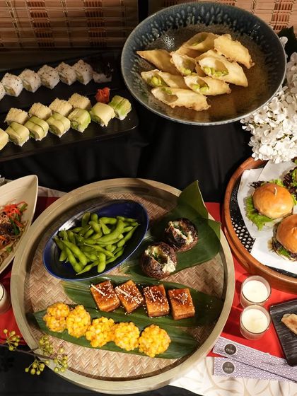 - Appetizers: Pass-around snacks including Gyoza, Yakitori skewers, and Tempura prawns or vegetables.