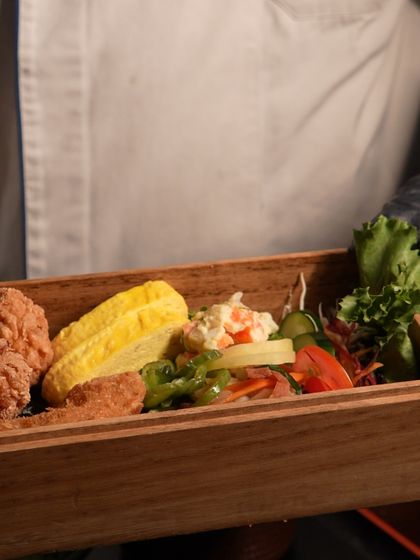 - Sides: Tamagoyaki (rolled omelet), Tsukemono (pickles), and potato salad.