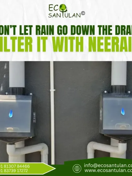 Don't let the monsoon ka paani just wash away. We provide a simple, plug-and-play filter that connects to your rooftop pipes to capture and clean this precious resource. This section shows you how our Neerain filters work, their benefits, and how they can be installed in homes, societies, farms, and factories to recharge borewells and improve water security.