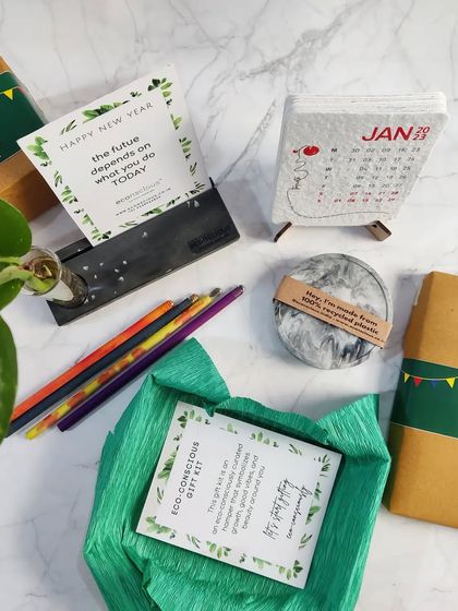 We create thoughtful corporate gifts that tell a story about your company's commitment to sustainability. Our hampers can be fully customized with your branding and a mix of our recycled products and other eco-friendly add-ons.