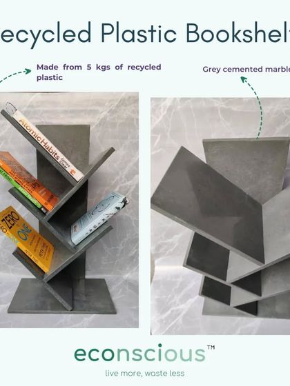 - Bookshelves & Stands: Our most ambitious - one shelf uses up 5 kilos of plastic waste. Smaller stands work for gadgets too.
