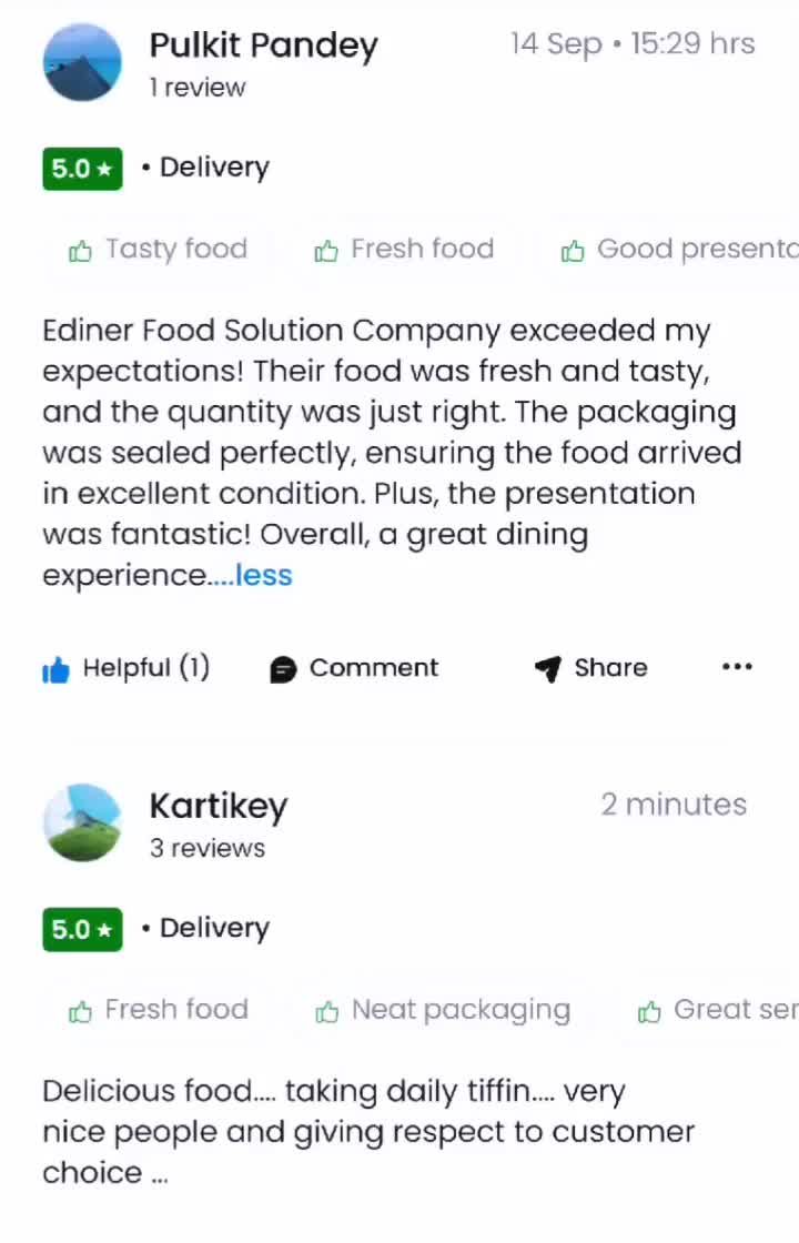 Don't just take my word for it. See what my customers in Delhi-NCR have to say about my food, delivery, and service. Their happiness is my biggest motivation.
