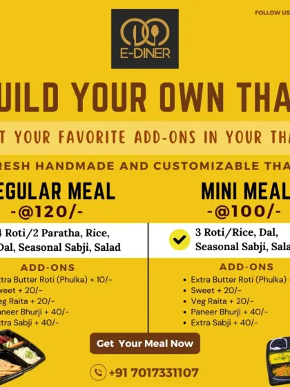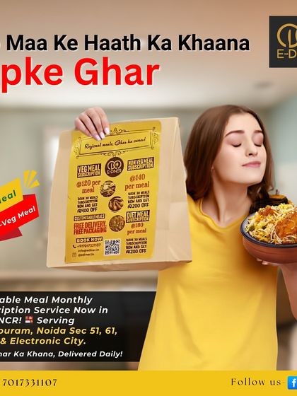 Hey, we’re E-Diner. Honestly, jab se Noida aaye, bas dal chawal hi milta tha - pak gaye the! Missing maa ke haath ka swaad, we started this for everyone grinding away from home. Food for us is emotion, not just filling the belly. We celebrate festivals with full josh and want you to feel that too. Our simple goal - plate full of happiness, ghar jaisa swaad, daily.