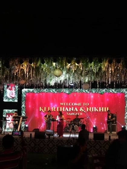 We are a multilingual live band for weddings, playing Hindi, English, Kannada, and Tamil songs with a mix of Bollywood, Sufi, rock, and retro, and we get everyone on the dance floor at any wedding event, anywhere.