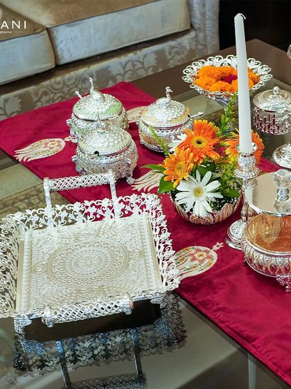 We specialize in luxury home decor that blends traditional artistry with modern aesthetics. Our offerings include premium soft furnishings crafted from silk velvet, decorative items like vases and candle holders, and spiritual decor featuring intricately designed mandir setups.
