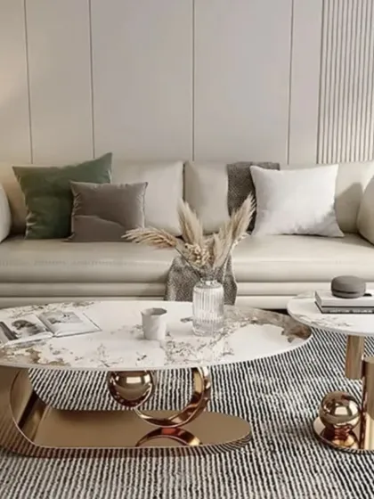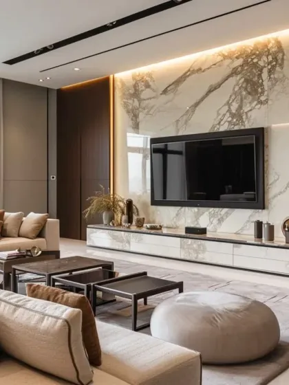 Modern Luxury Interiors - We use suede fabric, PU finish, and steel with PVD for a premium look. Latest trends for TV units, crockery cabinets.