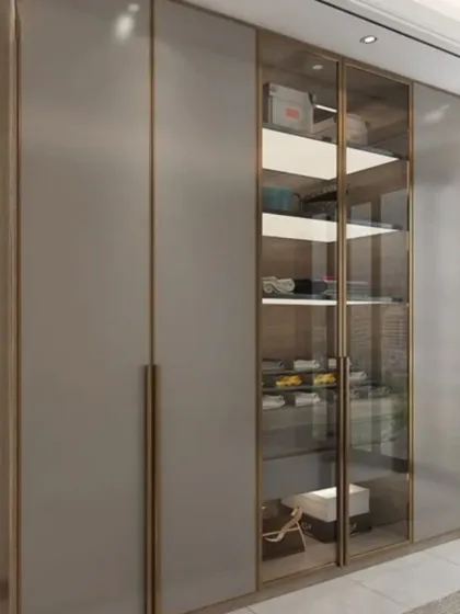 Modern Luxury Interiors - We use suede fabric, PU finish, and steel with PVD for a premium look. Latest trends for TV units, crockery cabinets.