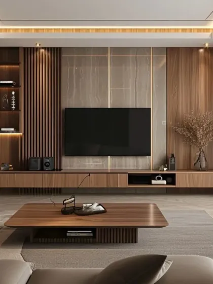 Modern Luxury Interiors - We use suede fabric, PU finish, and steel with PVD for a premium look. Latest trends for TV units, crockery cabinets.