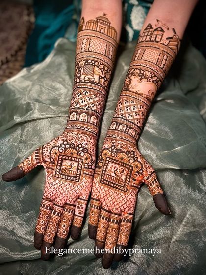 Custom Stories in Mehendi - Your story, your pet, even city skylines - I weave it into your mehendi. Personal touch always.