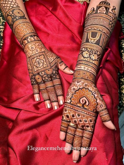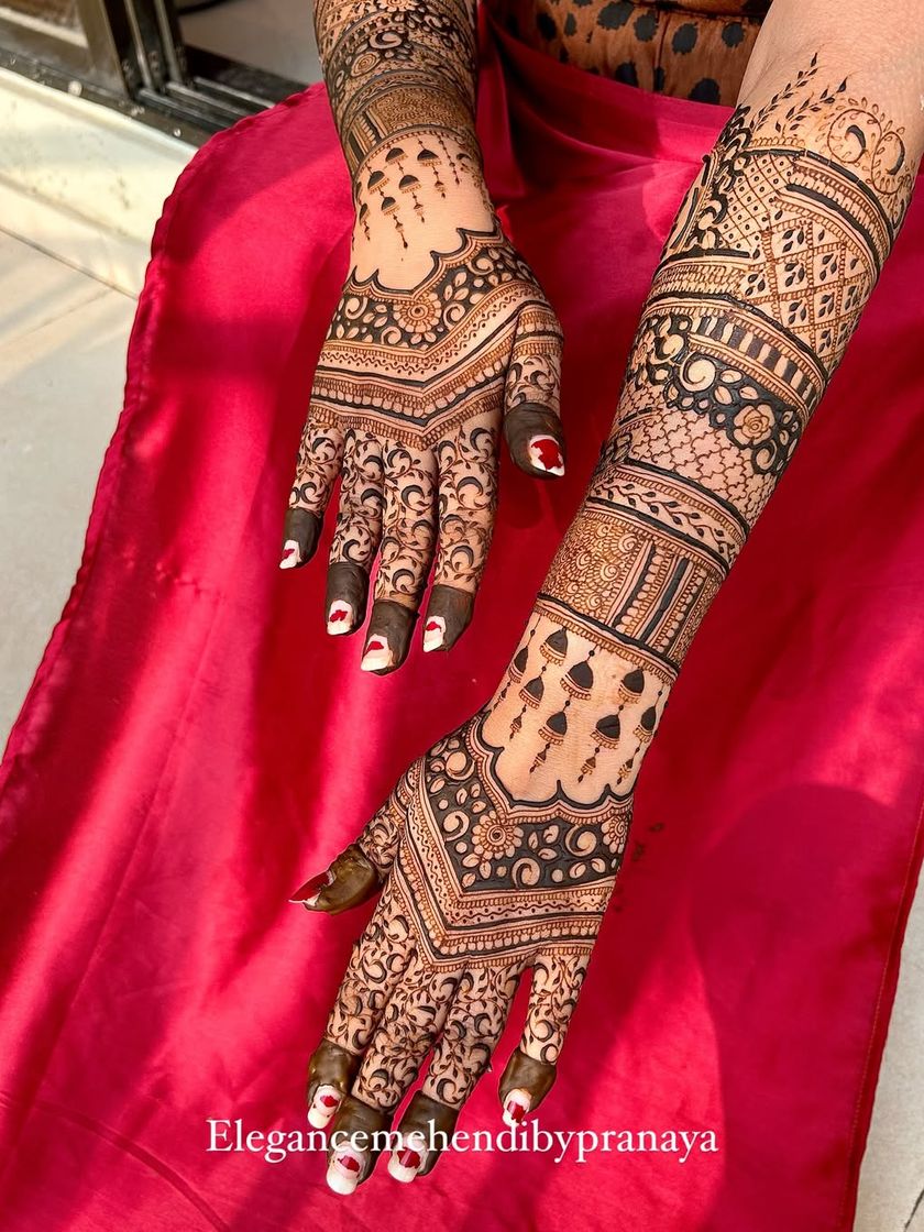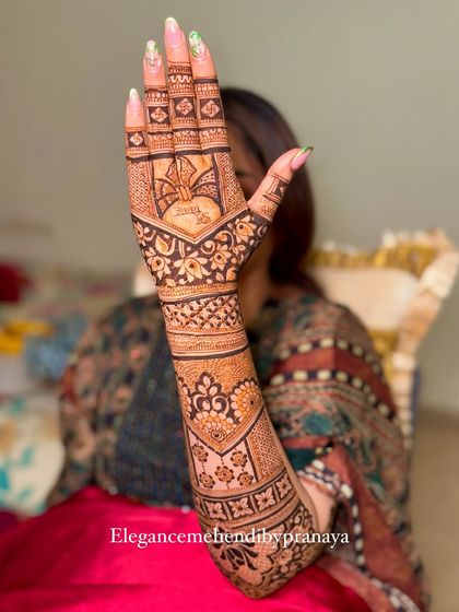 For the bride who wants a grand and traditional look, I create full, intricate mehendi designs that cover the hands and arms. These designs are packed with detail, using fine lines, shading, and classic patterns to create a stunning work of art for your wedding day.
