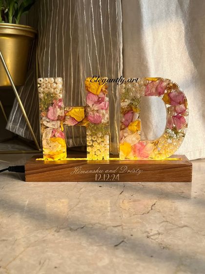 - LED lamps with your initials or hashtags, set on engraved wooden bases