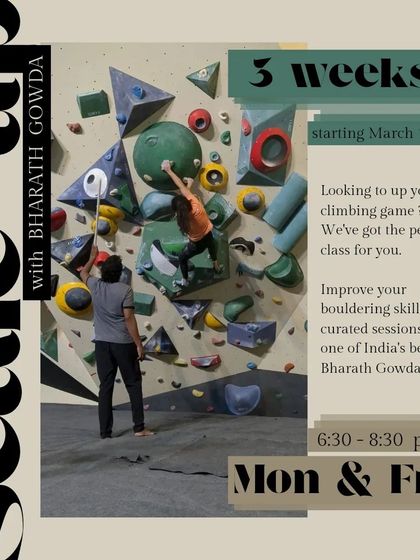 I’m all about making sure your climb is more than just getting to the top. If you’re new, a bit nervous, or just want to get your basics right, our beginner climbing classes are a solid starting point. Three weeks, two sessions a week, and you’ll pick up footwork, finger strength, route reading, and more. Bharath Gowda, who’s one of the top climbers in India, handles this course - you’ll be in good hands.