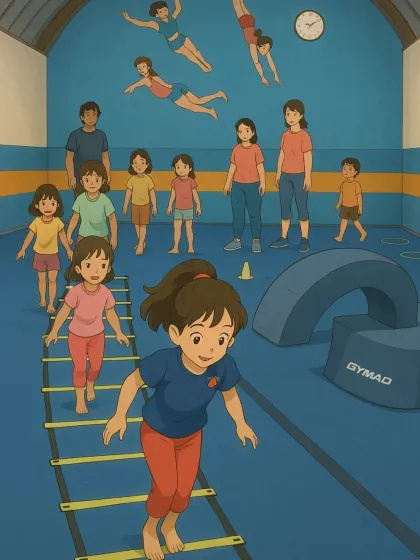 We run a summer gymnastics camp with separate batches for ages 5 to 14, daily training in skills like cartwheels and trampoline, flexible timings, and a closing event with medals and certificates.
