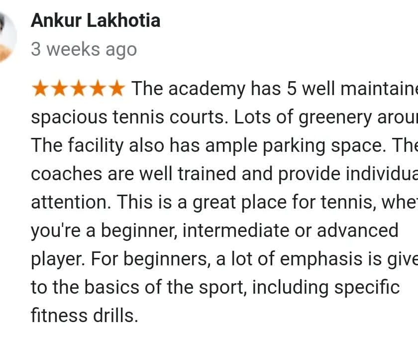We are proud of the community we have built. Read reviews from our members who appreciate the great environment, world-class coaching, well-maintained courts, and the progress they have made at our academy.