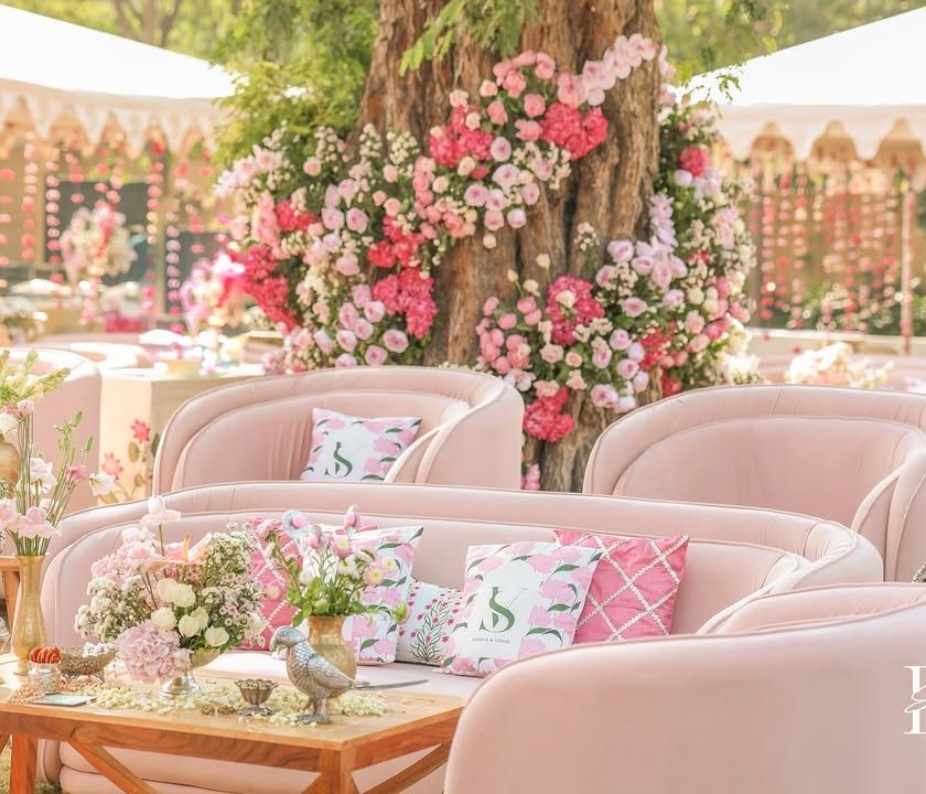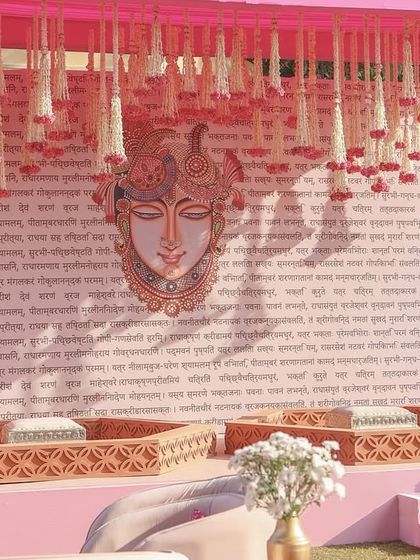 Inspired by the traditional art of Pichwai, this Haldi ceremony was a beautiful fusion of cultural heritage and modern design. The palette was a soft and celebratory pink, with hand-painted motifs, custom furniture, and intricate details that paid homage to the art form's Rajasthani roots.