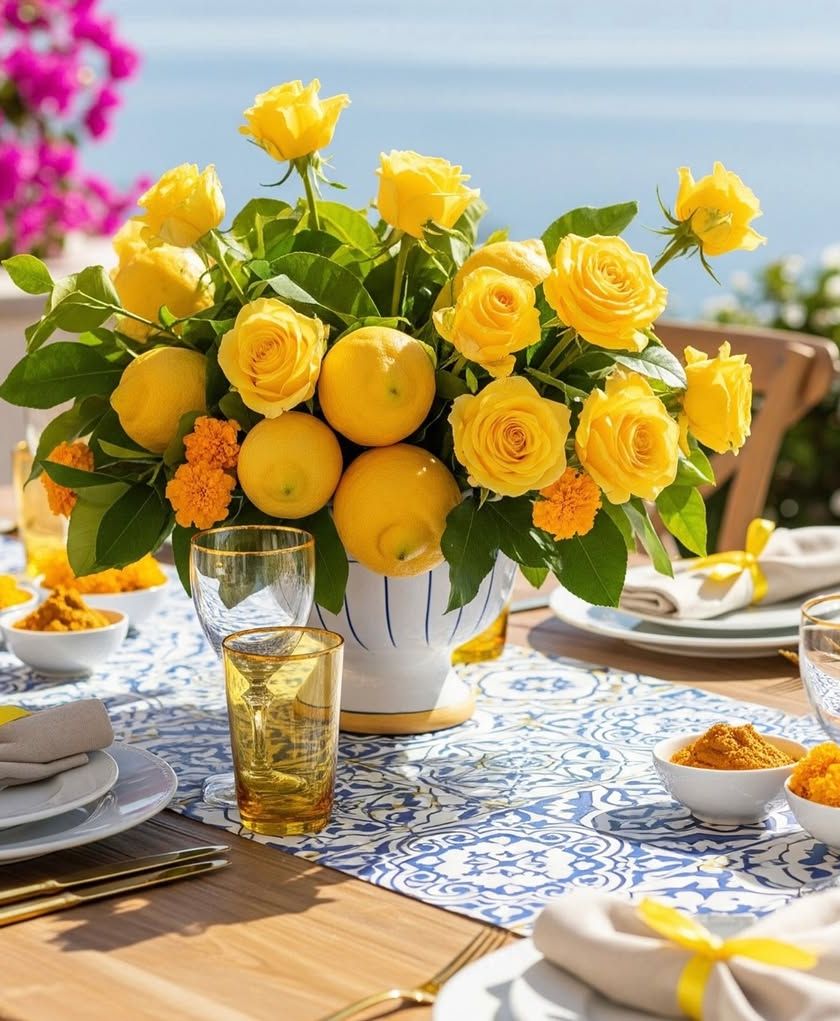 I brought the sun-drenched charm of the Amalfi Coast to this vibrant Haldi ceremony. The design was a cheerful blend of zesty lemons, classic blue and white Mediterranean tiles, and bright yellow roses, creating a destination-themed event that felt like a mini-vacation.