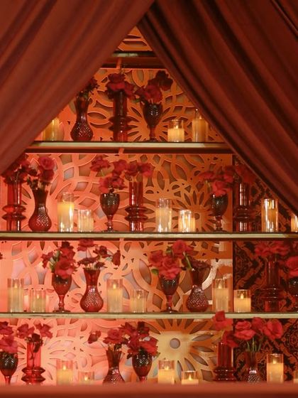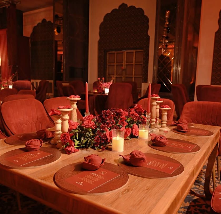 This sit-down reception dinner was a masterclass in the power of a single color. I drenched the entire space in shades of red, from the velvet chairs and floral arrangements to the ambient lighting, creating a dramatic, passionate, and incredibly chic atmosphere.