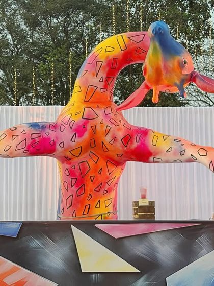 Inspired by the world-famous Elrow parties, this sangeet was a fearless explosion of color, character, and curated chaos. I designed this as a living canvas, with interactive installations, oversized surreal props, and theatrical elements that turned the venue into a playground for the senses.