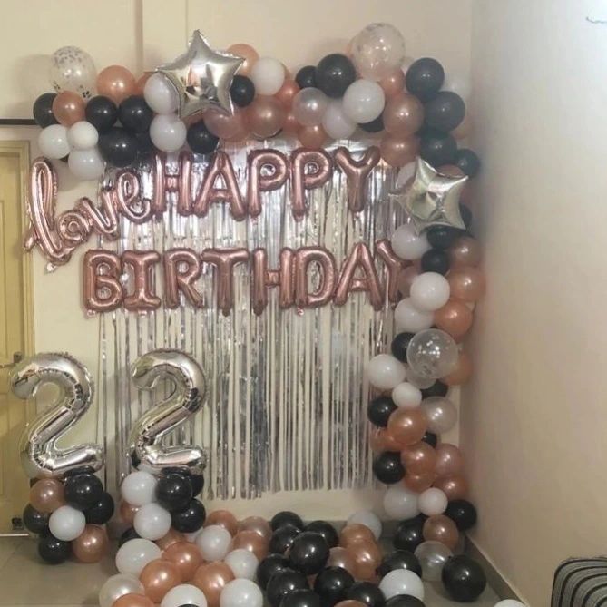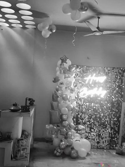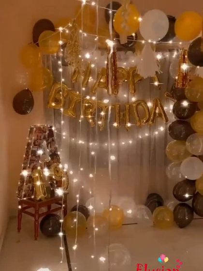 I can transform any room in your house into a beautiful celebration space for a surprise party or an intimate gathering. My services include wall backdrops with balloons and foil curtains, ceiling decorations, and personalized setups for bedrooms or living rooms.
