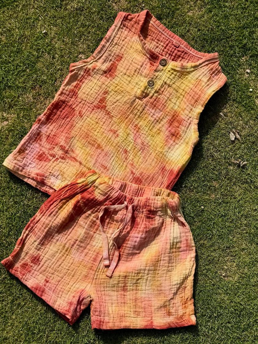 Here you can find a collection of my finished creations, all handmade with natural materials and sustainable practices. This includes naturally dyed clothing for kids and adults, block-printed t-shirts, unique tie-dyed tote bags, hair accessories, and custom-bound notebooks perfect for gifting or personal use.
