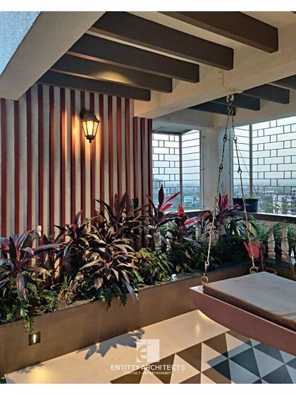 - Designed Panvel penthouse terraces with swings, patterned tiles, and a wooden deck for evening hangouts.