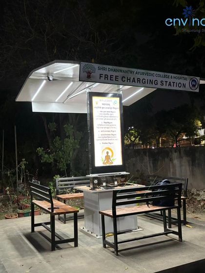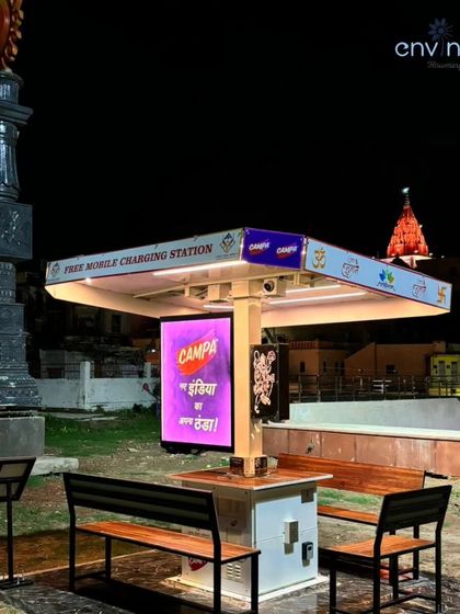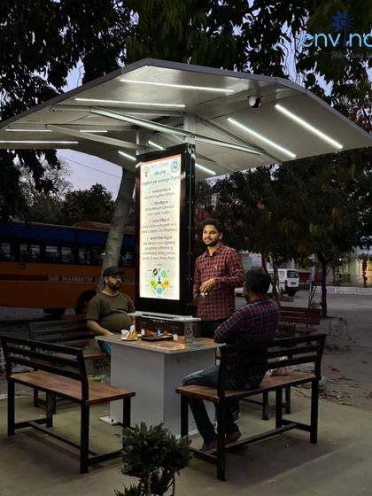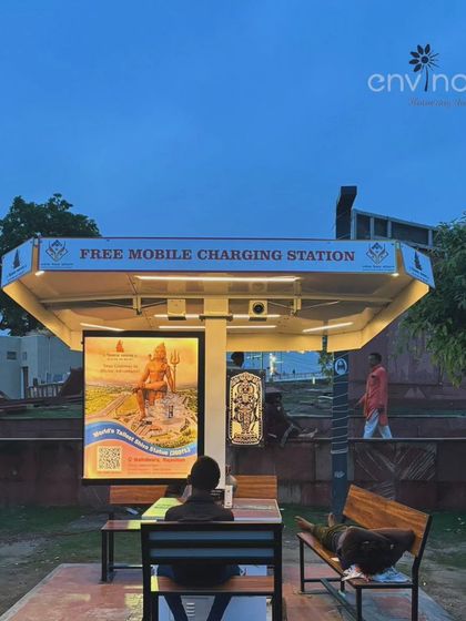 We build solar-powered shelters that give free device charging, Wi-Fi, lighting, and safe seating in public spaces, customised for each location and tough enough for any Indian weather.
