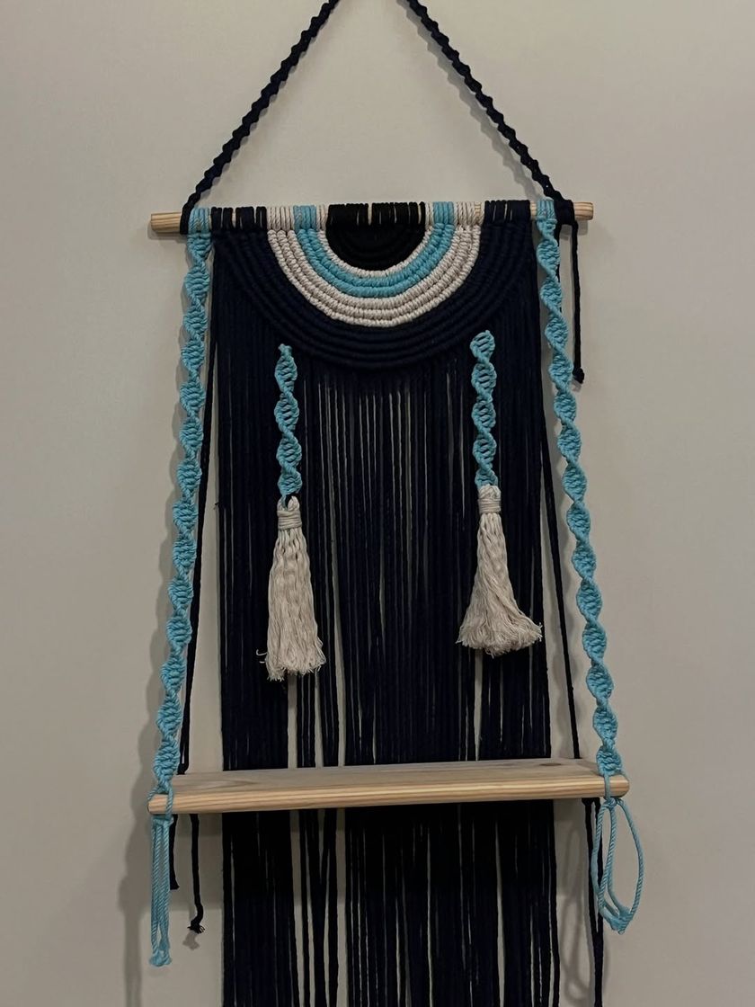 I design macrame pieces that are not just for looks but are useful too. My collection includes sturdy wall shelves perfect for books and decor, and a variety of plant hangers to display your green friends, available as single pieces or in colorful sets.