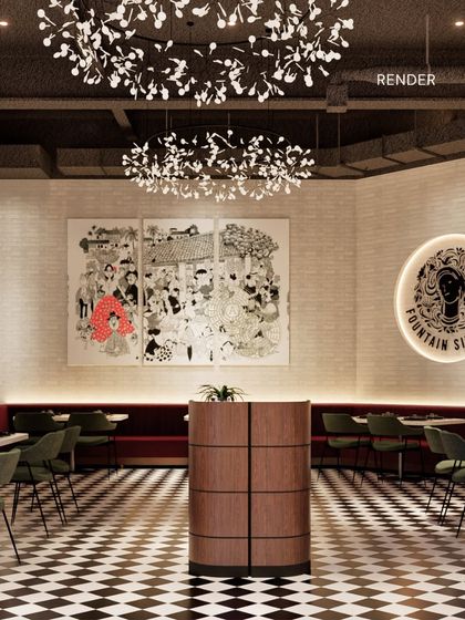 For the relaunch of this iconic Mumbai brand, our design was an ode to the old while looking to the future. We blended nostalgic elements like checkerboard floors and Art Deco-inspired arches with modern touches, custom artwork, and a warm color palette to create a space that feels both familiar and fresh.