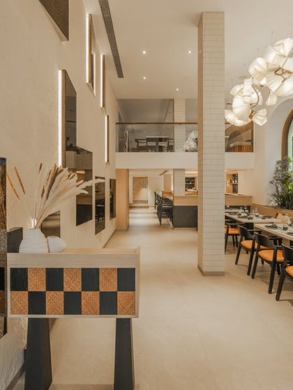 Taking over the site of the iconic Indigo Deli, our brief for this Japanese restaurant was to create a space with quiet strength. The design is rooted in warm minimalism, using a soft, neutral palette of beige, wood, and white, with clean lines and natural textures to create a calm, timeless, and inviting atmosphere.