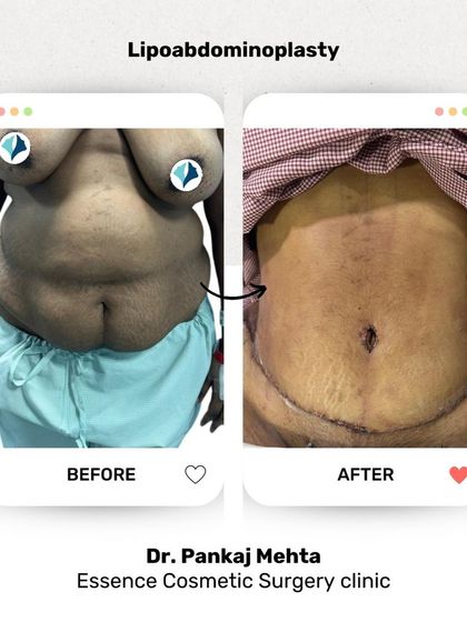 - Abdominoplasty: Removal of excess loose skin from the lower abdomen and tightening of separated muscles (diastasis recti).