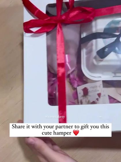 - Romantic Valentine’s box with roses, mini cake, and love-themed treats