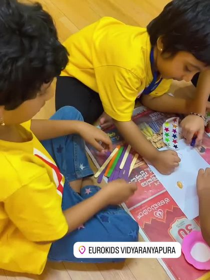 - Play-based learning activities - like phonics with word wheels, Kannada Varnamale songs, hopscotch for numbers, seed planting, and painting with whatever we find.