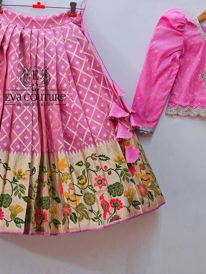 Custom Traditional Wear for Kids - We make custom Kanchi pattu lehenga for kids, Paithani silk frocks, and raw silk kurtas for boys.