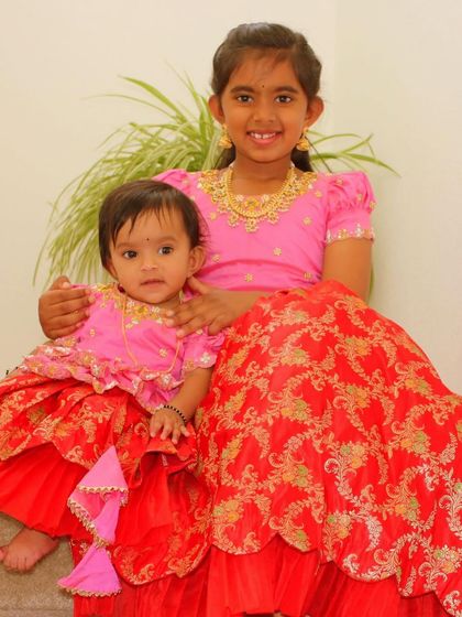 I design special outfits for newborns, babies, and toddlers up to 2.5 years old. These pattu pavadais and kurta sets are made with soft fabrics and comfortable linings, with extra margins for future use.