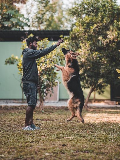 Training is about clear communication and trust, not just commands. I use positive reinforcement to teach everything from the basics like 'sit' and 'aaja' (come) to more complex routines, ensuring your dog listens because they want to, not because they have to. Each session is tailored to the dog's learning style.