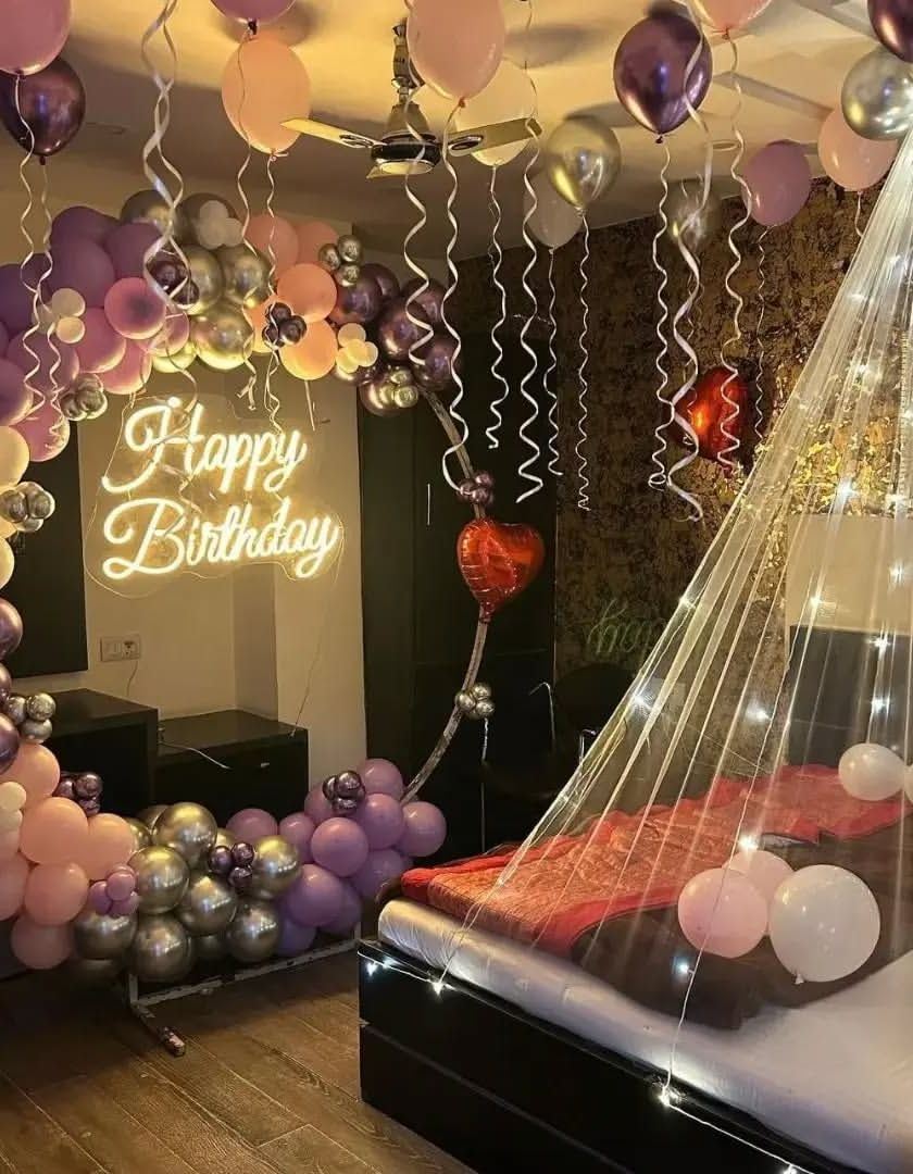 I create intimate and romantic settings for anniversaries, birthdays, or proposals. These decorations often include bed canopies with fairy lights, heart-shaped balloons, "LOVE" or "Just Married" foil letters, and petals to make your special moments even more memorable.