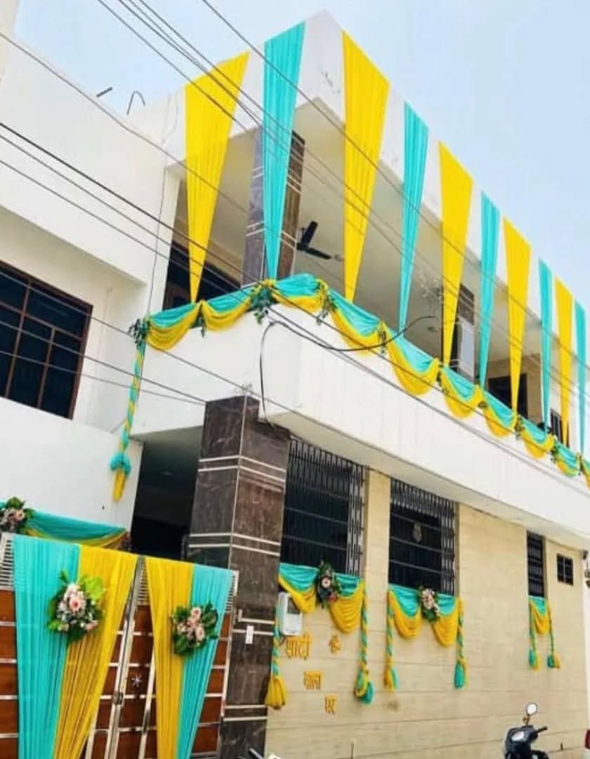 I decorate home exteriors to announce your wedding festivities to the world. This service covers decorating gates, balconies, and main entrances with colorful fabric drapes and floral arrangements, ensuring your home looks beautiful and festive.