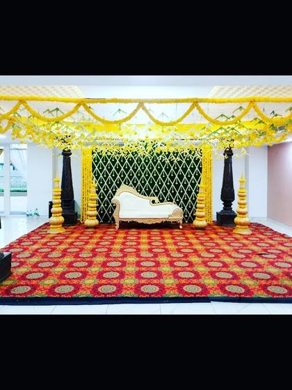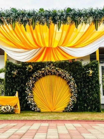 Haldi & Ceremony Decor - We create Haldi ceremony setups, mantap designs, stage backdrops, and fun photo booths.